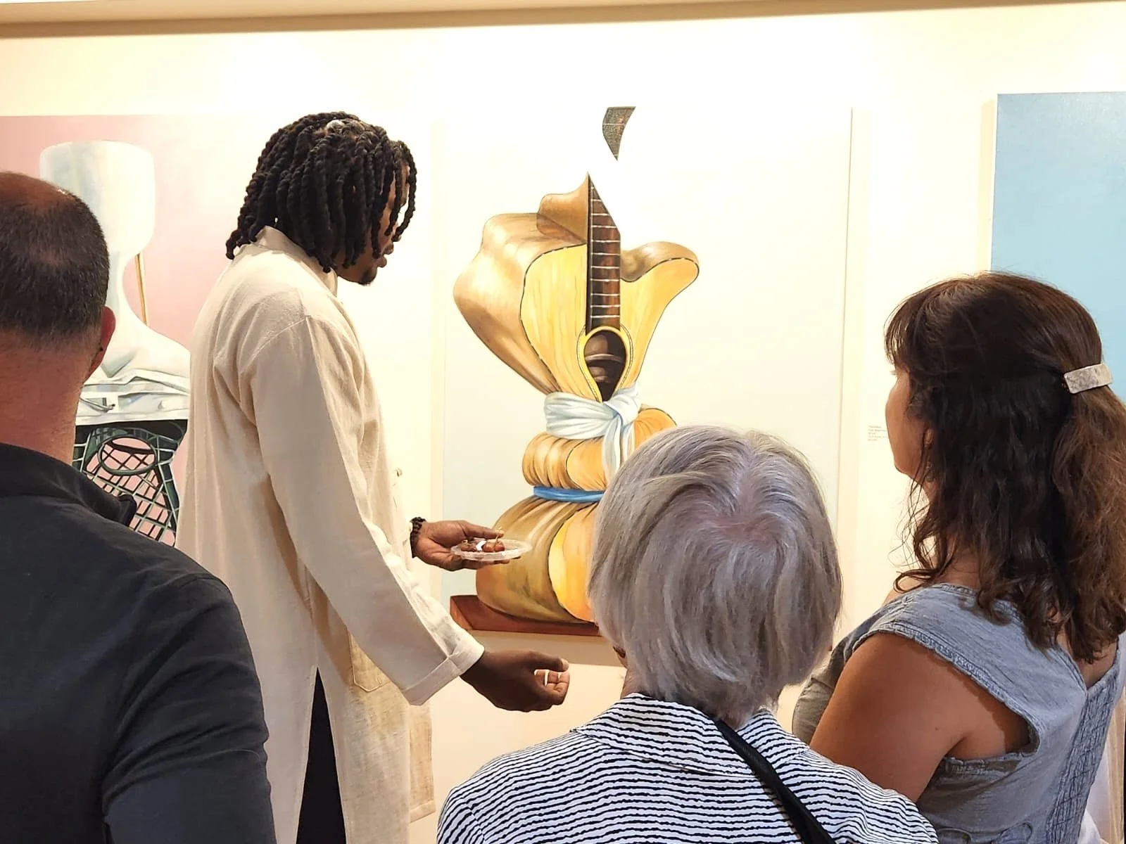 Andy Beauchamp is a Bahamian-born, Haiti-raised artist who combines surreal imagery with elements of music. He often uses musical instruments in his work to show how music can connect people, create emotion, and cross cultural boundaries.